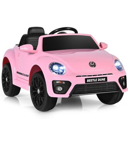 CostwayVolkswagen Beetle Voiture Électrique 12V/4,5 Ah pour Enfants 3-8 Ans Télécommande 2.4G LED USB Radio Klaxon Rose