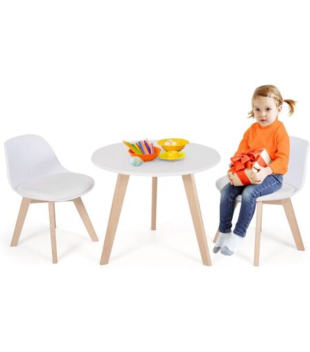 Costway - Table Enfants avec 2 Chaises en Bois de Hêtre, Table Rond ø 60cm et Chaises avec Dossier Ergonomique, Coussin Rembourré, Charge 80kg pour 2