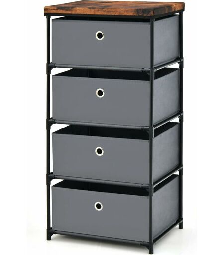 GOPLUS Commode de Rangement 4 Tiroirs, Meuble de Rangement avec Tiroirs en Tissu, Cadre Métallique Robuste, avec Tiroirs Amovibles et Pliables, pour