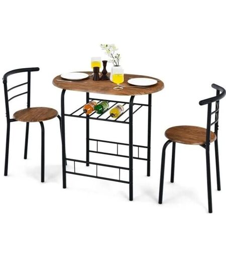 Costway Ensemble De Table Et 2 Chaises De Salle À Manger, Table De Cuisine : 80 X 53 X75cm (L X L X H) Cadre En Métal Marron + Noir
