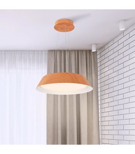 Relax4life - Plafonnier led Salon avec Grain Bois, Suspension Luminaire irc 84 avec Lumière Chaude 3000K, Cordes Métalliques Robustes, Lustre Design