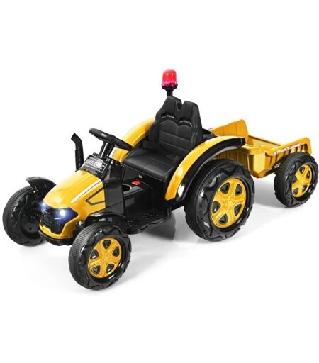 Costway Tracteur Electrique 12v 7ah -Télécommande 2.4g, 3-8 Km/H, Remorque Détachable Mp3, Port Usb Pour Enfants 3 - 8 Ans, Jaune
