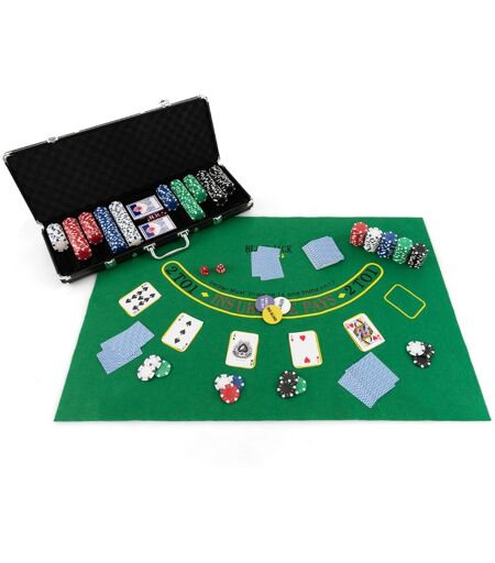 Notre ensemble de jetons est idéal pour jouer entre les amis. L'ensemble est emballé dans un boîtier compact léger mais robuste, avec le design verrouillable et équipée de deux clés très pratiques. Votre coffret sera toujours bien rangé et facile à transporter. C’est idéal pour jouer à domicile, le Texas Hold'em, le Black Jack, les tournois de pub poker. Attributs : 【Matériau supérieur】Notre mallette de poker est faite en aluminium solide, et possède une construction solide et durable, avec intérieur en feutre noir qui protégera vos jetons de poker et des dés de casino, votre coffret sera toujours bien rangé et facile à transporter. 【Design verrouillable】Notre mallette de jetons adopte la conception verrouillable et est équipée de deux clés très pratiques. Ce qui garantit la sécurité de vos jetons de poker et des dés de casino, et empêche que les bébés les mangent négligemment.【Accessoires fournis】Notre coffret de poker contient également tous les accessoires nécessaires à une partie de poker, y compris 500 jetons de poker, 2 jeux de cartes et 5 dés de casino,3 boutons dealers, bien équipé pour un jeu complet.【Expérience réelle】Face à notre ensemble de 500 jetons de poker, 2 jeux de cartes et 5 dés avec quelques amis, mettez cette combinaision luxueuse sur votre table et vous sentez comme vous jouez au poker dans un casino de Las Vegas!【Application large】Avec notre mallette de poker, vous pouvez jouir de ce jeu de jetons de poker dans plusieurs occasions, idéal pour les jeux à domicile, le Texas Hold'em, le Black Jack, les tournois de pub poker et les ligues de poker amateur. C’est vraiment amusant pour les enfants et les adultes. Caractéristiques : Ce jeu de poker est pour 2 à 4 joueursJeu de poker solide et verrouillable (2 clés incluses)Mallette en aluminiumest compact et léger pour un transport facileLes jetons sont écologiques, non toxiques et sans odeurSurface glisse vous donne un toucher confortableC’est vraiment amusant pour les enfants et les adultesIdéal pour les jeux à domicile, le Texas Hold'em, le Black Jack ...