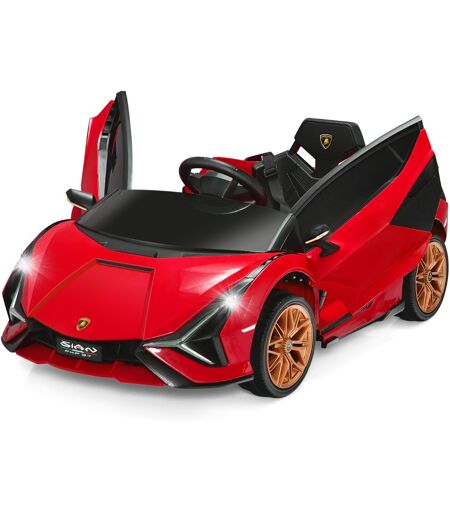 CostwayVoiture de Sport Électrique 12V pour Enfants 3-8Ans 2 Portes Papillons Effets Sonores et Lumineux 108x64x41cm Rouge