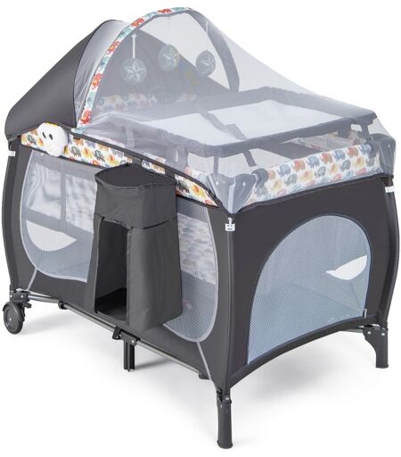 Costway5 en 1 Lit Parapluie Bébé avec Matelas & Moustiquaire Lit Bébé Evolutif avec Table à Langer Sac de Transport Charge 9kg pour 0-36 Mois Coloré