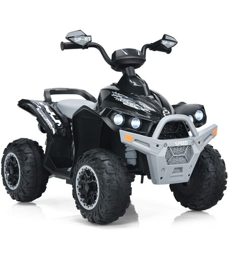 CostwayQuad Electrique pour Enfants 12V7Ah LED Musique Pédale Klaxon 3-4 km/h pour Enfants de 3 à 8 ans Noir