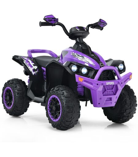 CostwayQuad Electrique pour Enfants 12V7Ah LED Musique Pédale Klaxon 3-4 km/h pour Enfants de 3 à 8 ans Violet