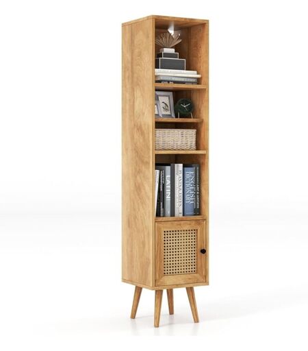 GOPLUS Armoire de Rangement scandinave, 30 x 30 x 137 cm, Porte en Rotin et étagère Réglable, Bibliothèque sur Pieds Autoportante, Naturel