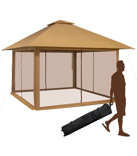 CostwayTonnelle de Jardin Pliante 4 x 4M Pop-up avec Parois Latérales en Maille à Fermeture Éclair Tente Réception Double Toit Hauteur Réglable Brun