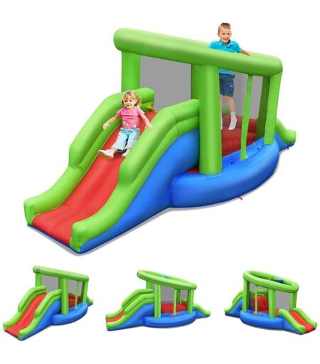Attributs: Zones d’Activités Multiples : Ce château gonflable polyvalent pour enfants dispose d’une variété d’espaces de jeux amusants. Un trampoline spacieux, des toboggans lisses et un panier de basket-ball offrent tous un plaisir sportif sans fin pour les enfants. Cela aide à favoriser l’interaction parent-enfant, et à réduire efficacement le temps d’écran. Conception Sécurisée : Nous nous engageons à offrir un environnement sûr pour vos enfants. Les rampes latérales surélevées des toboggans et la paroi en filet de la zone de saut peut empêcher les enfants de tomber accidentellement. De plus, 7 piquets de sol robustes sont fournis pour fixer la maison gonflable fermement au sol. Matériau Durable : Cette aire de jeux gonflable est fabriquée en tissu Oxford de haute qualité pour garantir son imperméabilité, sa résistance à l’abrasion, sa résistance à la déchirure et sa durabilité. En outre, les coutures renforcées garantissent la durabilité et une capacité de charge allant jusqu'à 90 ...