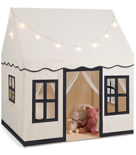 CostwayTente de Jeux Enfant avec Guirlandes Lumineuses Étoiles Tapis en Velours Corail Lavable 3-4 Enfants 121 x 101 x 137 cm Beige