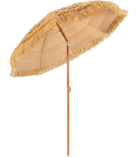 Relax4life - Parasol de Plage Hawaï Tropicale Dia.200cm Inclinaison Réglable, Parasol de Paille 8 Baleines et Mât en Fer pour Extérieur Portable pour