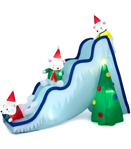 Costway220 CM Décoration Gonflable de Noël avec 6 Lumières LED 3 Ours Polaires Toboggan et Sapin de Noël pour Intérieur/Extérieur