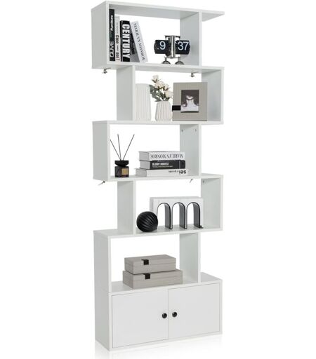 Goplus - Bibliothèque étagère de Rangement à 5 Niveaux en Forme s avec Armoire Dispositif Anti-Basculement, Meuble de Rangement Polyvalent en Bois