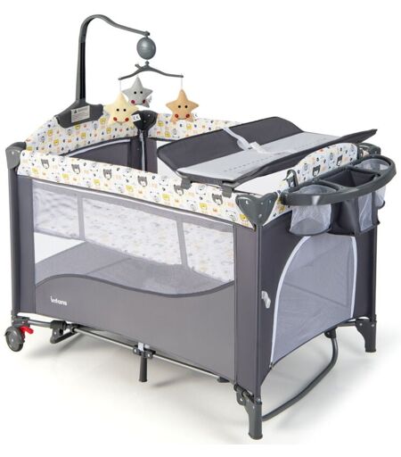 Goplus - Lit Bébé Parapluie, avec Matelas et Sac, Lit Bébé de Voyage Compact, pour 0-3 Ans Jusqu'à 30 kg, 125x65x76 cm, Gris