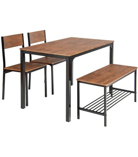CostwayEnsemble Table et 2 Chaise 1 Banc 4 Personnes Style Industriel Structure en Métal pour Salle à Manger Restaurant Cuisine Marron
