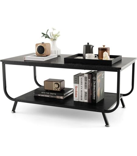 Costway - Table Basse Salon Double Plateau Effet Marbre, Table Salon Rectangulaire Moderne, Cadre en Métal, 105 x 55 x 46,5 cm (Noir)