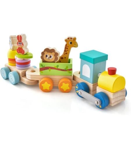 Matériau : herbe, bois de hêtre, contreplaqué - Dimension hors tout : 36 x 10 x 14 cm (L x l x H) - Âge : 3 ans+ - Comprend 3 wagons (amovibles) en bois, 4 jouets animaux et 4 blocs colorés - Les coins arrondis et les bords sans bavures protègent la peau délicate des enfants -Ficelle en coton qui permet de tirer le train, rien de tel pour inciter votre enfant à marcher. ...