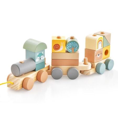 Dimension hors tout : 38 x 7 x 12,5 cm (L x l x H) - Âge : 3 ans+ - Comprend 3 wagons (amovibles) en bois, 15 blocs colorés - Les coins arrondis et les bords sans bavures protègent la peau délicate des enfants -Ficelle en coton qui permet de tirer le train, jouet à trainer pour favoriser sa motricité. ...