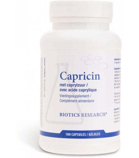 Complément alimentaire à utiliser dans le cadre d’une alimentation variée, équilibrée, d’un mode de vie sain. Acide caprylique à libération progressive sous forme de caprylats de calcium et de magnésium. Composition: Agglutinant: microcristalline, Gélule: Gélatine, Caprylate de calcium, Caprylate de magnésium, Gélule: Eau; Glycérine. Valeur nutritionelle: Pour 4 gélules % AR* Acide caprylique (caprylate de calcium et de magnésium) 1600 mg Calcium (caprylate) 133,3 mg 17 % Magnésium (caprylate) 66,7 mg 5 % *Apport de référence Conseil d'utilisation: Adultes Première semaine 4 x 1 gélule par jour puis 3 x 3 à 4 gélules par jour pendant les repas. Enfants Première semaine 2 x 1 gélule par jour puis 3 x 1 à 2 gélules par jour pendant les repas. Précautions d'emploi: Garder au frais et au sec. Garder hors de portée des enfants. Ne pas dépasser la dose journalière recommandée, sauf si autrement conseillé. Poids net: 76,4 g = 100 gélules Fabricant: Energetica Natura France Rue Pernelle 12 75004 Paris ...