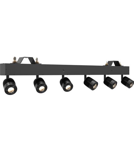 Pinspot Bar: Le Pinspot Bar est l'éclairage idéal pour les expositions, les buffets ou d'autres éléments spéciaux lors de vos événements. Les six spots offrent un rendement élevé et un design basé sur des lampes conventionnelles. Les six spots peuvent être commandés individuellement et offrent donc une flexibilité de programmation totale. Plus d'encombrement de câbles: Avec un seul bloc d'alimentation compatible PowerCon, vous pouvez créer beaucoup de lumière et un aspect propre lors de vos événements. Le couplage d'alimentation est également pris en charge. Les diffuseurs et les filtres de couleur inclus vous permettent d'ajuster parfaitement la lumière à vos besoins. Des colliers oméga sont également inclus pour vous apporter une aide supplémentaire lors de l'installation. Le contrôle est possible via l'écran numérique intégré, le DMX, la télécommande sans fil IRC-6 ou D-Fi USB. Points forts: 6 spots offrent un rendement élevé et un design basé sur les lampes conventionnelles, Un aspect propre et élégant sans câbles enchevêtrés, Les six spots peuvent être contrôlés individuellement et offrent donc une flexibilité de programmation totale., Filtre de couleur 2700K fourni, Contrôle par écran numérique intégré, DMX, télécommande sans fil IRC-6 ou D-Fi USB, Colliers oméga fermés, Spécifications: Canaux DMX: 1, 6 et 11, Connexions DMX: XLR à 3 et 5 broches, Source lumineuse: 6 LED (blanc chaud) 15 W, (3,6 A), durée de vie de 50 000 heures, Fréquence PWM: 1000 Hz, Angle du faisceau: 5°., Angle de champ: 11°., Éclairement: 7 707 lux à 2 m (par unité), Liaison électrique: 8 unités à 120 V, 13 unités à 230 V, Tension d'entrée: 100 à 240 V AC, 50/60 Hz (réglage automatique), Énergie et électricité:171 W, 1,4 A à 120 V, 60 Hz191 W, 0,8 A à 230 V, 50 Hz, Poids: 4,3 kg (9,4 livres), Dimensions: 1000 x 119 x 131 mm (39 x 4.6 x 5 pouces), Homologations: CE, RoHS, Température de couleur: 4000 K, Indice de rendu des couleurs: 81, Support: 13 mm, Contrôleurs en option: IRC-6, D-Fi USB, Inclus dans l'étendue de la livraison: Pinspot Bar, Câble d'alimentation, 2 supports oméga, 6 diffuseurs de 10, 6 diffuseurs à 20, 6 filtres de couleur 2700K, Guide rapide ...
