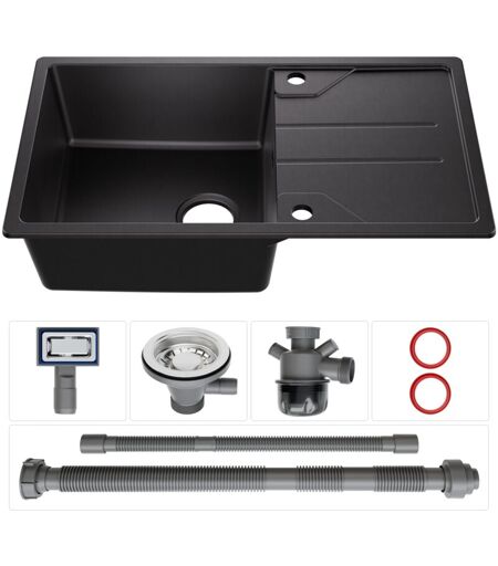 Cecipa Max - derw max Evier à encastrer Quartz et résine, Noir Evier 1 bac, Evier de Cuisine avec étagère (78 x 45 cm)