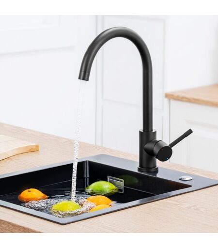 Cecipa Max - Mitigeur de Cuisine en Acier Inox , Robinet Évier à Eau Froide et Chaude, Rotatif à 360 °, Avec Barboteur Démotable, Noir