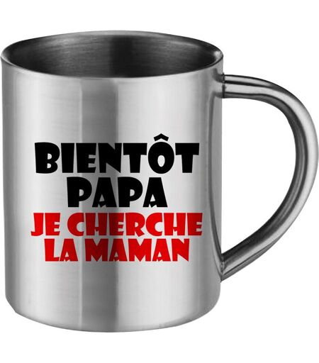 Mug Inox "Bientôt Papa Je Cherche La Maman" Cadeau Fête Des Mères, Fête Des Pères Ou Toutes Autres Occasions.