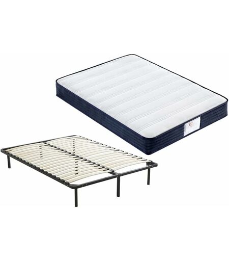 Ensemble Composè:Matelas a Memoire de Forme Matelas+Sommier à Lattes sur Pieds-7 Pieds Inclus (Ensemble 140x190,22) - Teeno