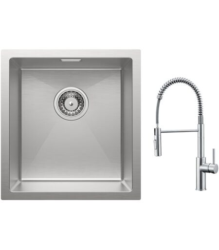 Cecipa - vier 1 Bac 40x44cm Évier Inox Évier de Cuisine Brossé + Mitigeur de Cuisine à Ressort avec Douchette Extractible, Robinet Evier 2 Modes de