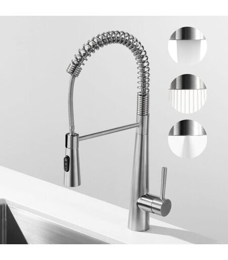 Cecipa Mitigeur Cuisine à Ressort avec 3 Modes de Sortie D'eau - Robinet de Evier avec Douchette Extractible - Robinet d'eau Chaude et Froide de Cuisine - Brossé!!! ♥Caractéristiques du Mitigeur Cuisine à Ressort: ☞ 3 Modes de Sortie D'eau: → Eau classique : l'eau qui s'écoule est douce, résistante aux éclaboussures, facile à nettoyer et permet d'économiser jusqu'à 40 % d'eau ; → Eau de douche : peut éliminer efficacement la saleté sur la vaisselle ; → Blade Water : Gère facilement la saleté tenace sur les éviers ou la vaisselle. → 3 modes de sortie d'eau peuvent être facilement commutés. ☞ Rotatif à 360°: → Le tube à ressort et le support du robinet peuvent tourner à 360°, et le support et le tube à ressort peuvent tourner indépendamment. De plus, la tête de traction est fixée par une boucle, ce qui rend l'opération très fluide. Grâce au réglage à 360° du robinet, celui-ci bénéficie d'une plus grande liberté de mouvement dans et autour de l'évier. ☞ Excellente Qualité: → Le robinet à ...