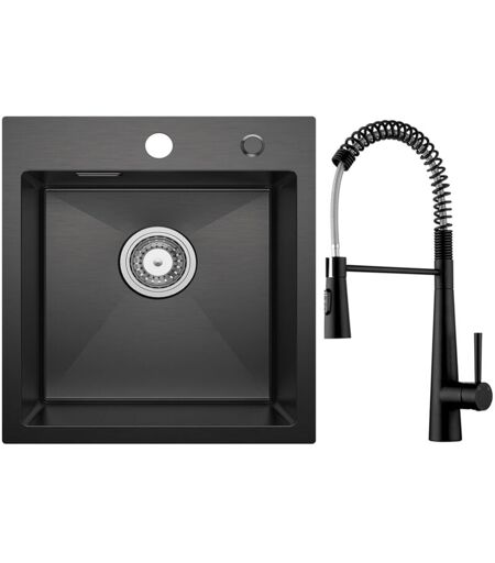 Cecipa Max - vier 1 Bac 40 × 45 cm Anthracite Évier de Cuisine Évier Inox 304 + Noir Mitigeur Cuisine à Ressort avec 3 Modes de Sortie D'eau