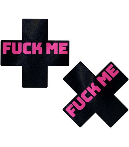 Découvrez la large collection de caches-tétons de la célèbre marque américaine Pastease ! Des gammes classiques en passant par les formes les plus originales, vous trouverez votre bonheur à coup sûr. Prônant le « Body Positive », faites ressortir la femme rayonnante et souriante qui est en vous avec la marque Pastease ! Faites passer un message coquin à votre partenaire avec ces caches-tétons Fuck Me de Pastease ! Portés en forme de croix ou de plus, ils possèdent le message très coquin " FUCK ME " pour un look provocateur et sexy qui ne laissera pas votre partenaire indifférent. Alors, prête pour une nuit de folie ? Utilisation : * Assurez-vous que vos tétons sont secs et nettoyés de toute huile ou crème. * Positionnez la pastille protectrice pour éviter toute irritation au niveau du téton. * Retirez le film protecteur et collez votre cache-tétons en lissant les bords. Grâce au Pastease Refills (https://www.espaceplaisir.fr/pastease-refills-plus-cross.html), vous pourrez réutiliser votre paire de cache-téton jusqu'à 3 fois ! Dimensions: * Longueur : 7,6 cm * Largeur : 7,6 cm * Diamètre de Couvrance : 4,1 cm Ce produit est hypoallergénique, garanti sans gluten, sans parabens et sans latex. Ne pas utiliser sur peaux sensibles, si vous avez des irritations, des dépigmentations de la peau ou des coups de soleils. Waterproof. Fabriqué aux USA. ...