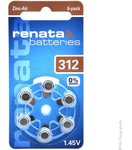 Swatch Group - Pile auditive 312A 0%Hg 1.45V 165mAh - Renata