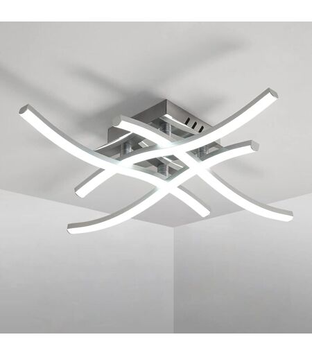 Goeco - Plafonnier led Moderne Argenté 24W 2300LM Lumière Froide 6500K, Design Ondulé avec 4 Tubes pour Salon Chambre Cuisine (46x46x7cm)