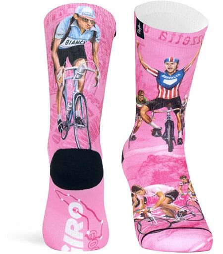 Les chaussettes Pacific and Co Tour 1903 font partie de la collection Grand Tour, en hommage aux courses cyclistes les plus célèbres et à leur histoire: le Tour d’Italie, le Tour d’Espagne et le Tour de France.Parmi les chaussettes GIRO 1909, le cycliste historique Fausto Coppi, surnommé Il Campionissimo, qui a été le champion du Giro d’Italia. Il est considéré comme l'un des meilleurs cyclistes de l'histoire et l'hommage rendu avec ces chaussettes est plus que mérité.Sur le front, Roger De Vlaeminck, surnommé The Gypsy avec son éminent miaou Brooklyn et dans le peloton des cyclistes de renom tels que Eddy Merckx.Chaussettes de sport en fibre de sport CoolMax et coton au niveau du talon. Renfort de flexion au talon pour éviter les irritations et renforcer l’impact.Illustration de Jota Erre. ...