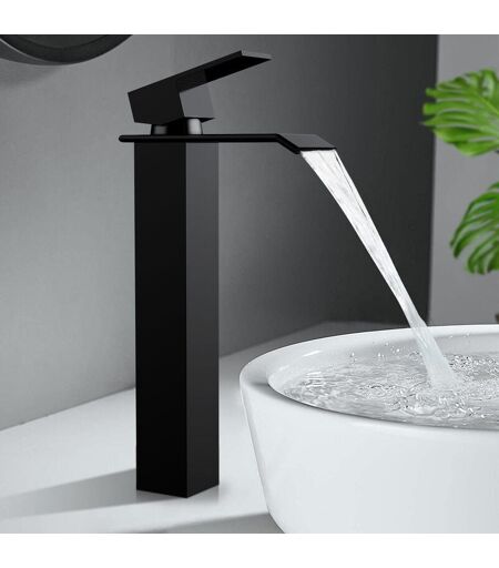 Homelody - Noir Mitigeur de Lavabo Cascade Robinet Salle de Bain Bec Haut Mitigeur pour Vasque Robinet Lavabo Haut de Gamme Design Moderne