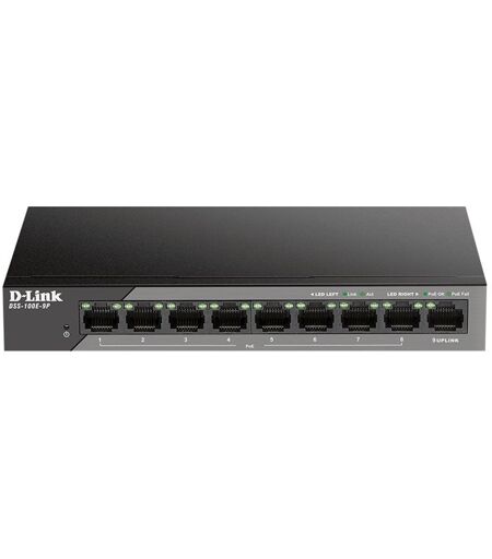 D-Link DSS 100E-9P - Commutateur - non géré - 8 x 10/100 (PoE) + 1 x 1000Base-T - de bureau - PoE (92 W)