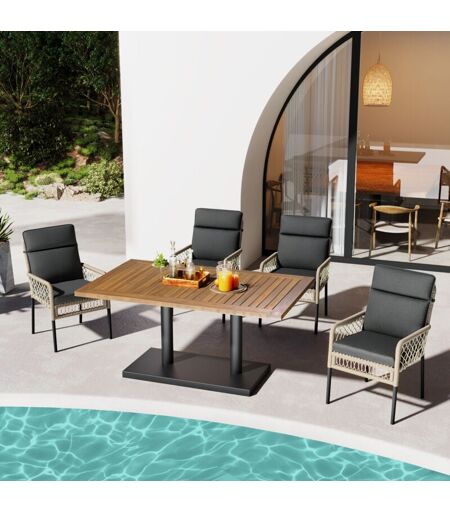 YOLEO Salon de jardin Table à manger d'extérieur 5 pièces,Ensemble de chaises pour 4 personnes,Dessus de table en bois d'acacia massif,Chaises en rotin