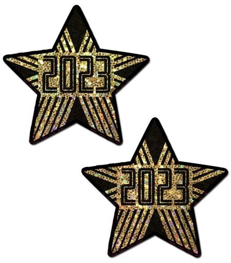 Envie de célébrer l'année 2023 ? Brillants et festifs, nous sommes vos Cache-Tétons Étoile 2023 Or de la marque Pastease ! Pour souhaiter une belle année ou pour n'importe quelle occasion de votre choix, notre motif étoile noir agrémenté de détails dorés à strass et d'une inscription "2023" se tient à votre disposition toute l'année ! Utilisation : * Assurez-vous que vos tétons sont secs et nettoyés de toute huile ou crème. * Positionnez la pastille protectrice pour éviter toute irritation au niveau du téton. * Retirez le film protecteur et collez votre cache-tétons en lissant les bords. Dimensions : * Longueur : 7.62 cm * Largeur : 7.62 cm * Diamètre de Couvrance : 3.94 cm Pensez à nos compagnons les Adhésifs de Rechange Pastease (https://www.espaceplaisir.fr/pastease-refills-star.html) pour jouir de nos services sans limites ! Nous sommes hypoallergéniques, garantis sans gluten, sans parabens et sans latex. Ne pas utiliser sur peaux sensibles, si vous avez des irritations, des dépigmentations de la peau ou des coups de soleil. Waterproof. Fabriqué aux USA. ...