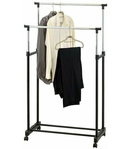 KEEPBUYING Portant à vêtements avec Roues,Porte Manteau à Double Tringles Hauteur Réglable pour Chambre à coucher,80 x 43 x 160cm,Noir