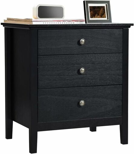 GOPLUS Table de Chevet avec 3 Tiroirs, Table de Nuit, pour Chambre, Salon, 60 x 45 x 66 CM (Noir