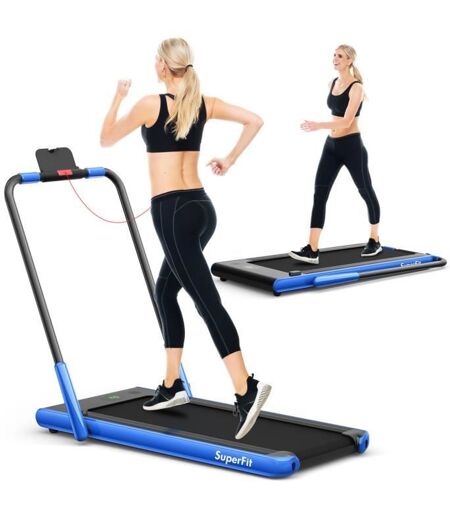 Costway Tapis De Course Roulant Pliable Contrôle App 1-12 Km-H Moteur 0,75cv Haut-Parleur Bluetooth Roue De Transport Écran Led Bleu