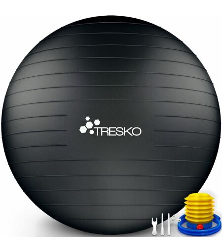 TRESKO Ballon Fitness Yoga Balle d’Exercice Antidérapant Balle Gymnastique avec Pompe 300 kg avec pompe à air Noir 85cm