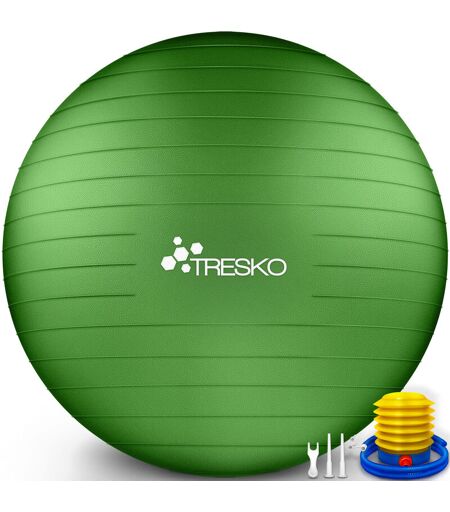 TRESKO Ballon Fitness Yoga Balle d’Exercice Antidérapant Balle Gymnastique avec Pompe 300 kg avec pompe à air Verte 65cm