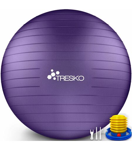 TRESKO Ballon Fitness Yoga Balle d’Exercice Antidérapant Balle Gymnastique avec Pompe 300 kg avec pompe à air Violet 75cm