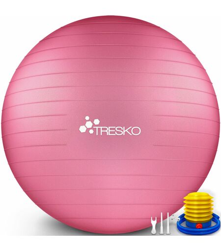 TRESKO Ballon Fitness Yoga Balle d’Exercice Antidérapant Balle Gymnastique avec Pompe 300 kg avec pompe à air Rose 85cm