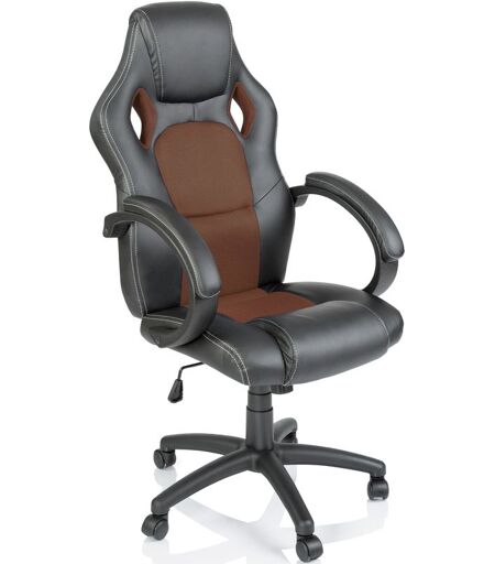 TRESKO Chaise de bureau, Fauteuil de bureau RACING SPORT GAMER Noir / Marron Rembourrage Épais - Hauteur Réglable