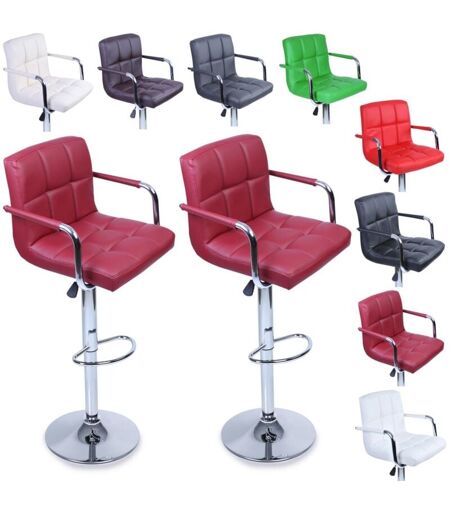 TRESKO Lot de 2 Tabourets de bar BORDEAUX avec dossier, accoudoir, chromé, rotation à 360°, hauteur réglable, 62,0 à 82,5 cm