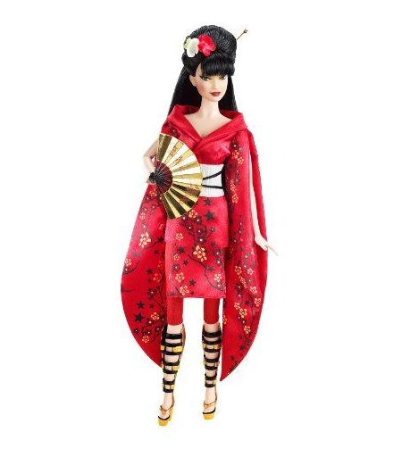 Barbie Collector Dolls of the World Japan Doll For the first time in the Dolls of the World Collection, a traditional look is infused with a fashion influence. Japan Barbie doll features a traditional Japanese patterned-fabric with contemporary styled clothing, accented with flowers in her hair. Age 6+p ...